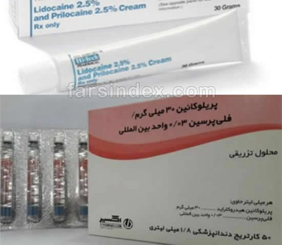 پریلوکائین هیدروکلراید 30 میلیگرم در میلیلیتر (3%) _ فلیپرسین 0.03 واحد بینالمللی در میلیلیتر (0.03 IU/ml)